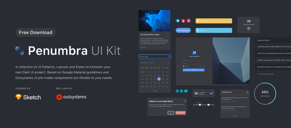 A collection of UI Patterns, Layouts and Styles to kickstart your next Dark UI project. Based on Google Material guidelines and Outsystems UI pre-made components but flexible to your needs.